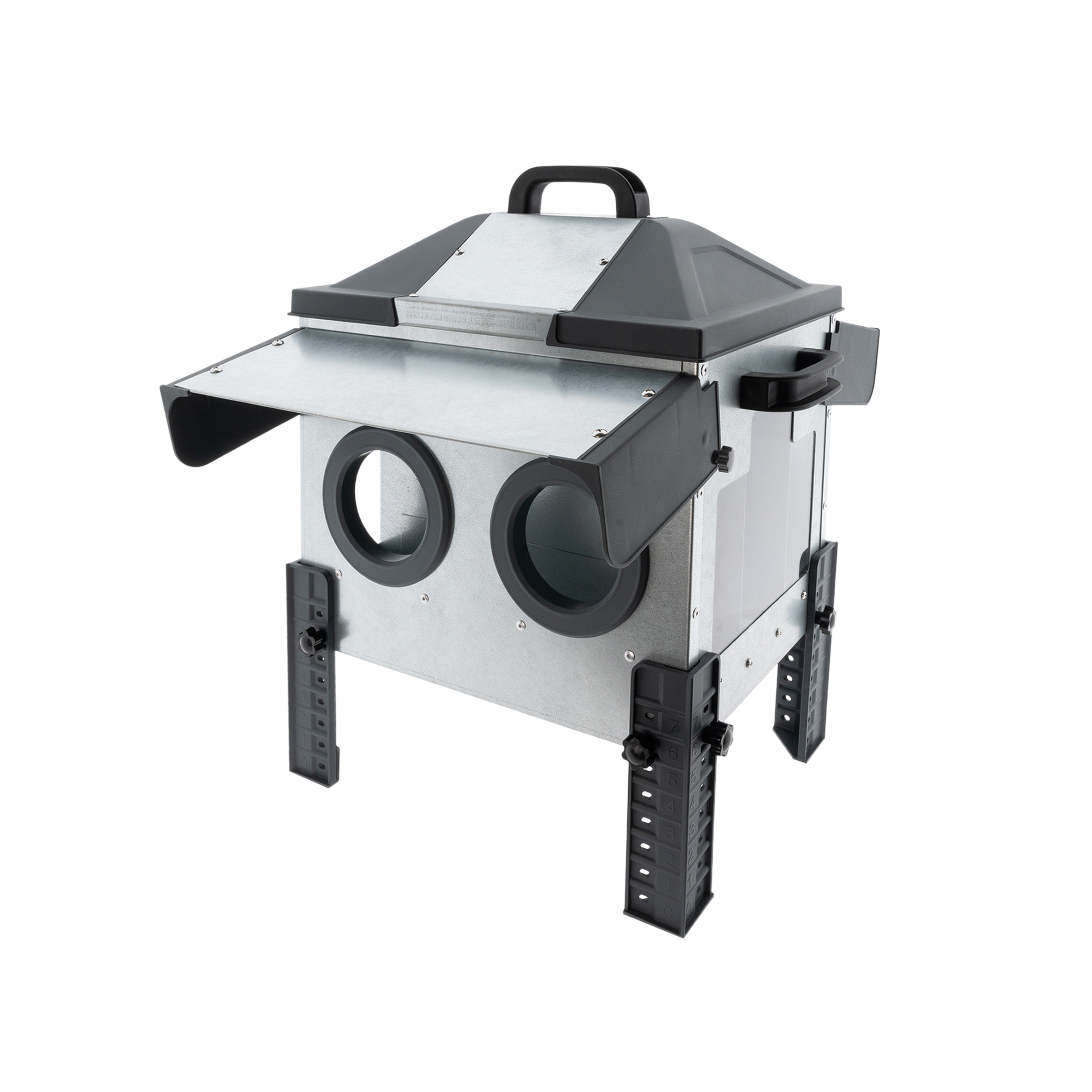 De ROBUST® metalen voerbak met voeropeningen is ontworpen voor efficiënt en hygiënisch voeren van kippen, zowel binnen als buiten. De speciaal gevormde kunststof voeropeningen beperken morsen en verminderen contact met buitenlucht, waardoor het voer langer droog blijft. Voor buitengebruik kan eenvoudig de meegeleverde rain cover worden gemonteerd.
